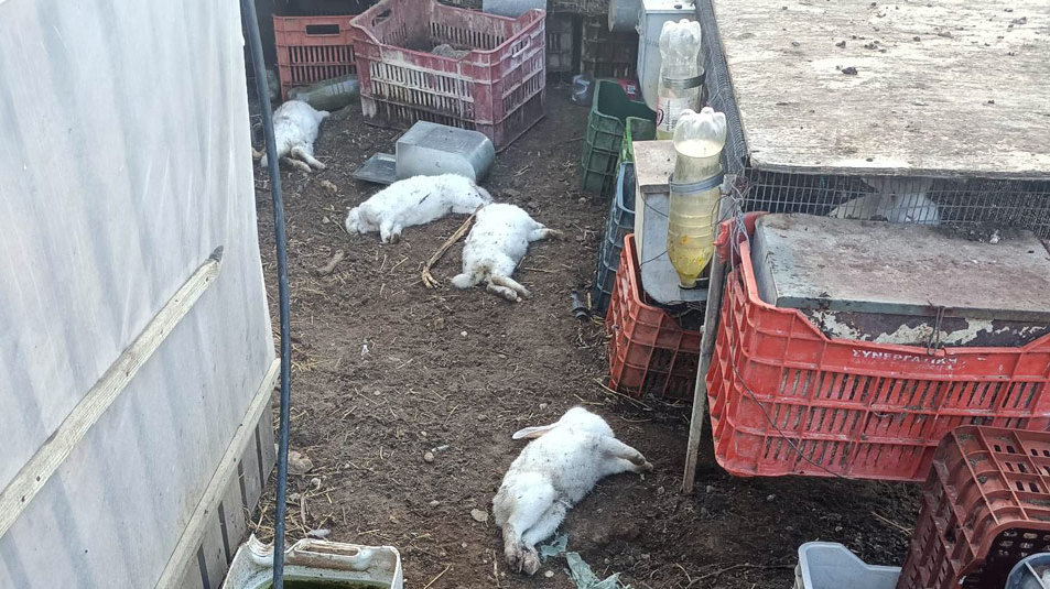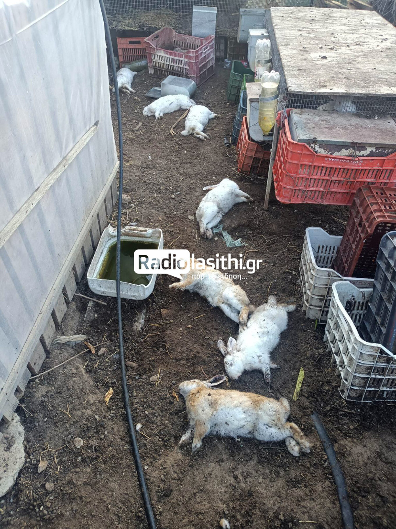 Όπως αναφέρει το radiolasithi.gr, αυτή τη φορά πιθανόν η ίδια αγέλη σκύλων κατάφερε να μπει ξανά σε άλλο σημείο της ιδιοκτησίας του στο Βαθύ Ρυάκι κοντά στην Ιεράπετρα, και σκάβοντας κάτω από το φράχτη μπήκαν στον χώρο που υπήρχαν κουνέλια και σκότωσαν και τα 20 που υπήρχαν εκεί συνολικά.