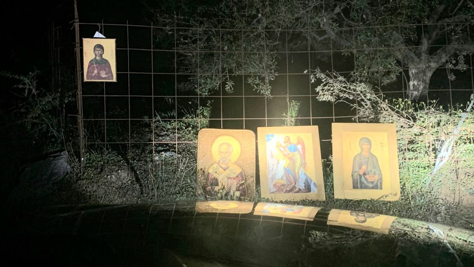Ηράκλειο: Άνδρας κρέμασε εικόνες Αγίων σε λιόφυτο στη Μεσαρά και ζητάει πίσω χρήματα (φώτο)