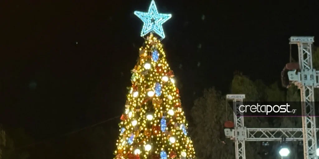Το Ηράκλειο έβαλε τα γιορτινά του και στόλισε απόψε (29/11) το χριστουγεννιάτικο δέντρο στην πλατεία Ελευθερίας, με μικρούς και μεγάλους να δίνουν το παρών σε μια εορταστική ατμόσφαιρα.