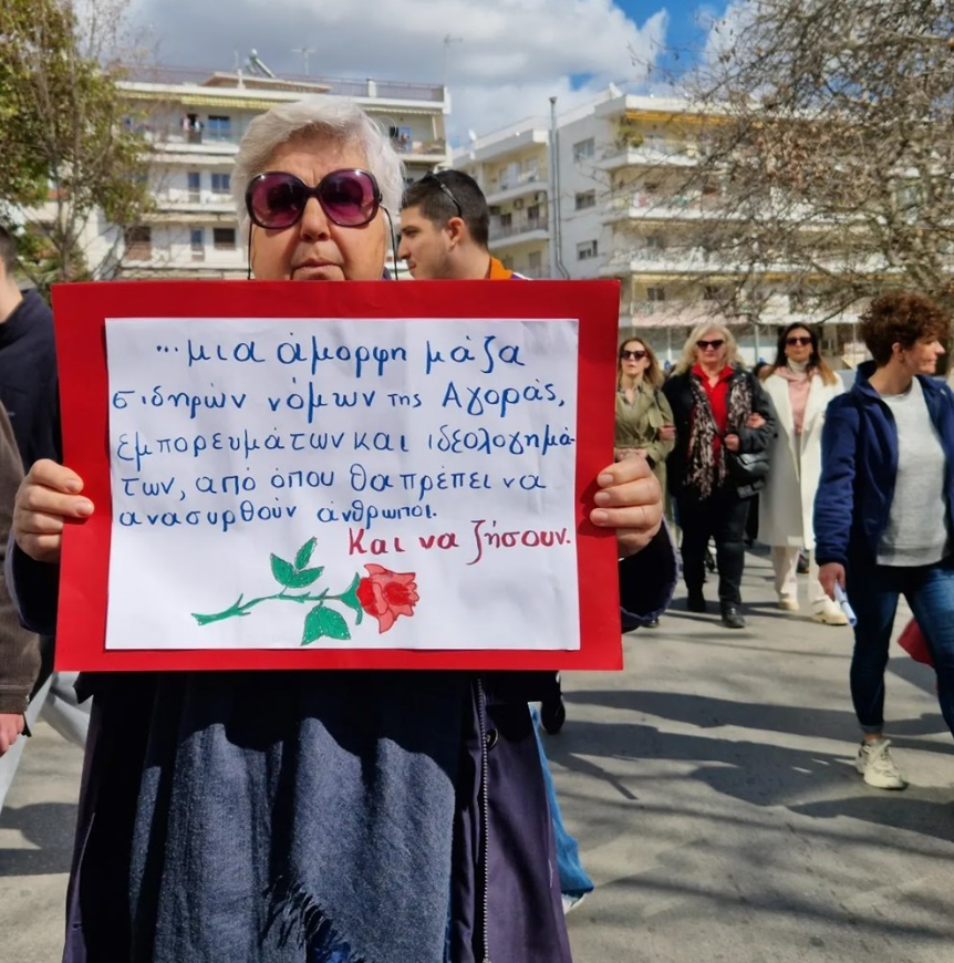 Μαθητές, φοιτητές, εργαζόμενοι, συνταξιούχοι, δικηγόροι, φαρμακοποιοί, επαγγελματίες από διάφορους κλάδους και πολίτες όλων των ηλικιών έδωσαν ραντεβού στην κεντρική πλατεία της πόλης.