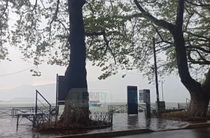 Τα έντονα φαινόμενα σάρωσαν και την περιοχή του μώλου δημιουργώντας τρικυμία στη λίμνη .