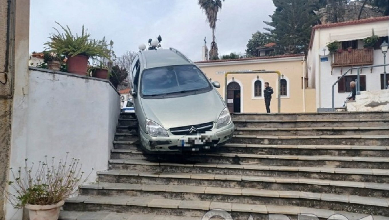 Τον δρόμο φαίνεται να «έχασε» ένας ηλικιωμένος οδηγός, αφού βρέθηκε να κατεβαίνει τα σκαλιά του Δημοτικού Ωδείου Καλαμάτας με το αυτοκίνητο.