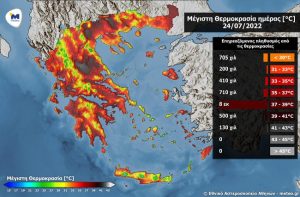 Συνεχίζεται το κύμα υψηλών θερμοκρασιών το Σαββατοκύριακο 23-24/07. Σύμφωνα με τα τελευταία προγνωστικά δεδομένα του Εθνικού Αστεροσκοπείου Αθηνών / meteo.gr, η μέγιστη θερμοκρασία σήμερα Σάββατο 23/07 θα κινηθεί στην περιοχή των 40 C ενώ την Κυριακή 24/07 κατά τόπους θα ξεπεράσει το φράγμα των 40 C.