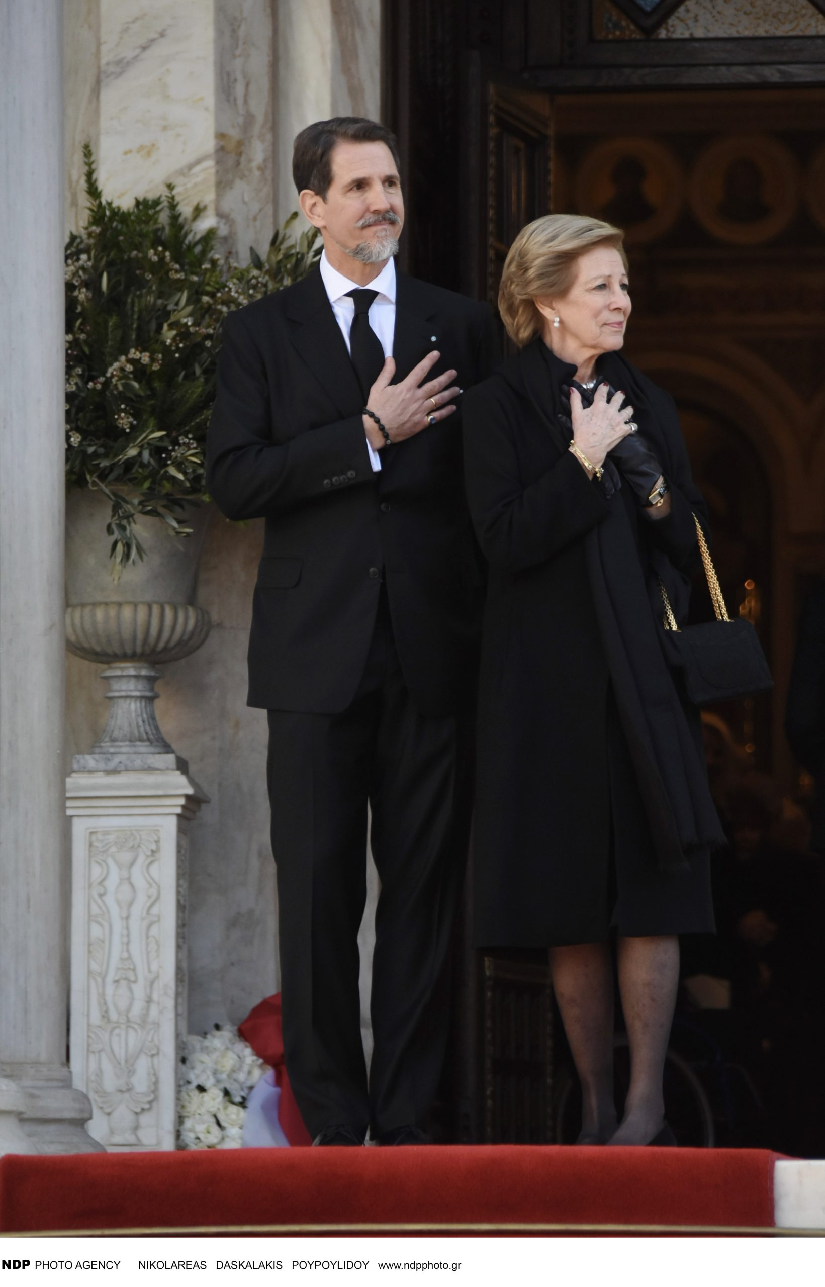 Η σύζυγος του τέως βασιλιά Κωνσταντίνου κοιτούσε συνέχεια το φέρετρο με την σορό του αγαπημένου της συζύγου στην εκκλησία. Ήταν βουρκωμένη και φανερά συντετριμμένη. Και πως να ήταν αλλιώς.