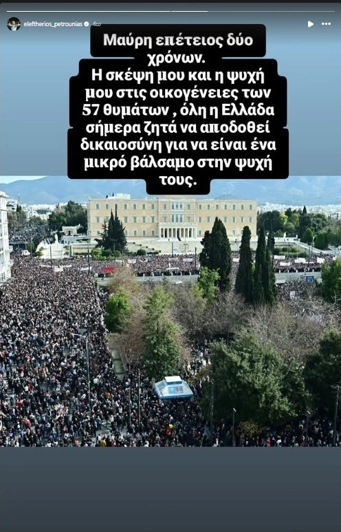 Με ανάρτησή του αναφέρθηκε στην τραγωδία των Τεμπών πριν από δύο χρόνια, τονίζοντας πως η ψυχή και το μυαλό του είναι με τις οικογένειες των θυμάτων.