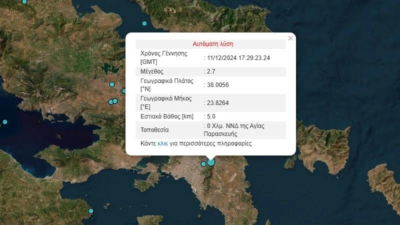 Σύμφωνα με το Γεωδυναμικό Ινστιτούτο η νέα σεισμική δόνηση είχε μέγεθος 2,7 Ρίχτερ και είχε επίκεντρο ξανά στην Αγία Παρασκευή.