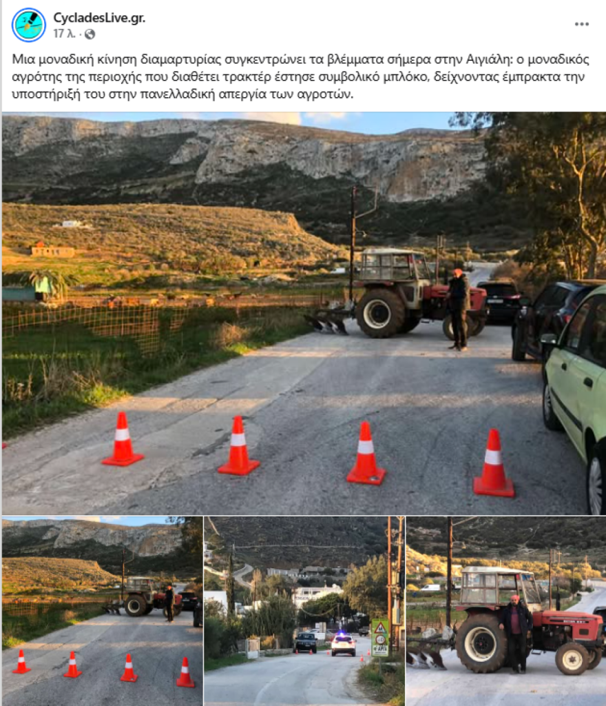 Μπλόκο και στην Αμοργό, με ένα μόνο τρακτέρ!