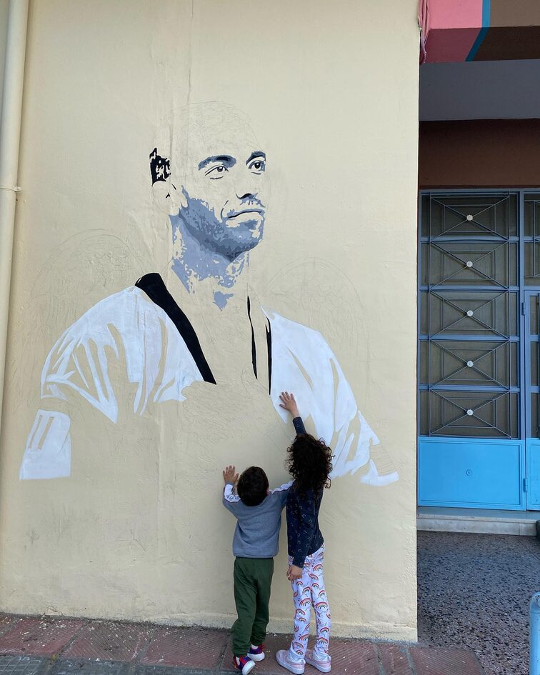 Συγκίνηση προκαλεί το γκράφιτι του καλλιτέχνη Μάριου Σιμόπουλου στον τοίχο του 1ου Γυμνασίου – Λυκείου Σταυρούπολης, εκεί απ’ όπου αποφοίτησε το 1997 ο Oλυμπιονίκης Αλέξανδρος Νικολαΐδης.