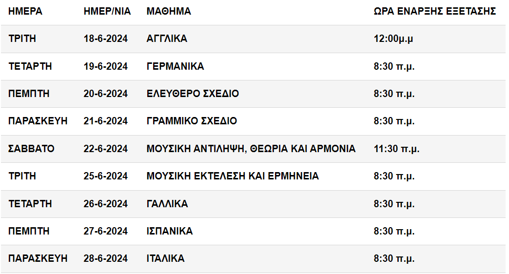 ΠΡΟΓΡΑΜΜΑ ΕΞΕΤΑΣΕΩΝ ΕΙΔΙΚΩΝ ΜΑΘΗΜΑΤΩΝ και ΜΟΥΣΙΚΩΝ ΜΑΘΗΜΑΤΩΝ ΓΕΛ & ΕΠΑΛ ΕΤΟΥΣ 2024