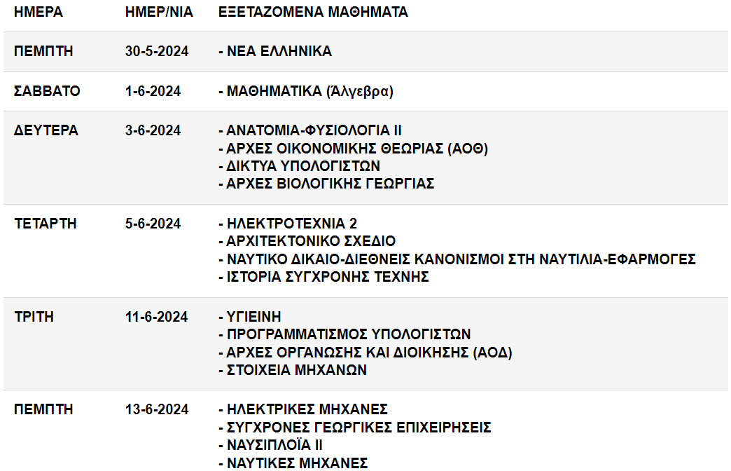 ΠΡΟΓΡΑΜΜΑ ΠΑΝΕΛΛΑΔΙΚΩΝ ΕΞΕΤΑΣΕΩΝ ΗΜΕΡΗΣΙΩΝ ΚΑΙ ΕΣΠΕΡΙΝΩΝ ΕΠΑΛ ΕΤΟΥΣ 2024