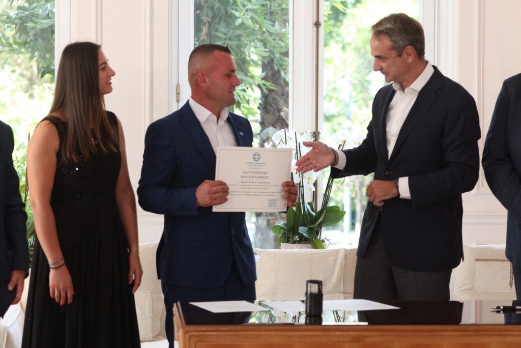 Ο Κυριάκος Μητσοτάκης υποδέχθηκε σήμερα (17/09) στο Μέγαρο Μαξίμου τον Γκόγκα Λεβιάν, τον άνδρα που είχε βουτήξει στον Άραχθο για να σώσει τα δύο παιδιά, στο πλαίσιο της τελετής πολιτογράφησής του.