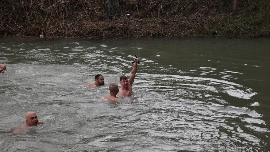 Στα νερά του λιμανιού έπεσαν 50 κολυμβητές για να πιάσουν το Σταυρό.