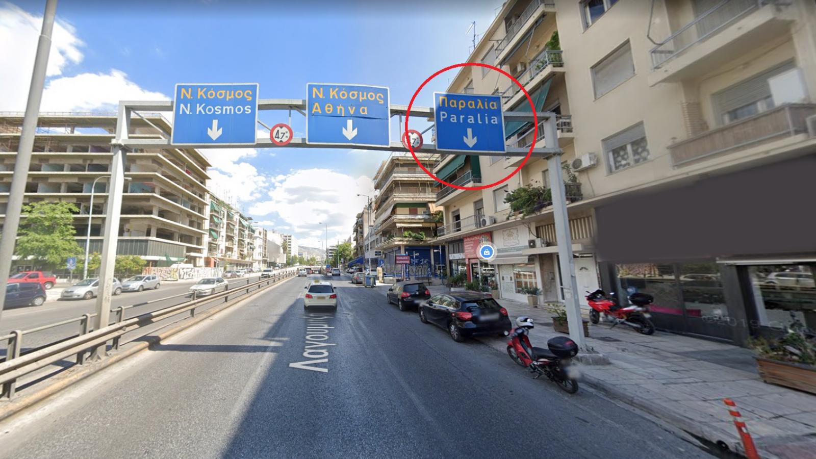 Στην εν λόγω πινακίδα η οποία στεκόταν αρκετά μέτρα πάνω από το οδόστρωμα αναγραφόταν -μεταξύ- άλλων και η κατεύθυνση την οποία θα πρέπει να ακολουθήσει κανείς ώστε να καταλήξει, μέσω του καθοδικού ρεύματος της Λεωφόρου Συγγρού στην Λεωφόρο Ποσειδώνος ή όπως χαρακτηριστικά αναφέρει η οδική σήμανση στην «Παραλία».