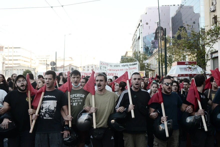 Περί τα 400 άτομα του ευρύτερου αντιεξουσιαστικού χώρου συμμετέχουν στο συλλαλητήριο.