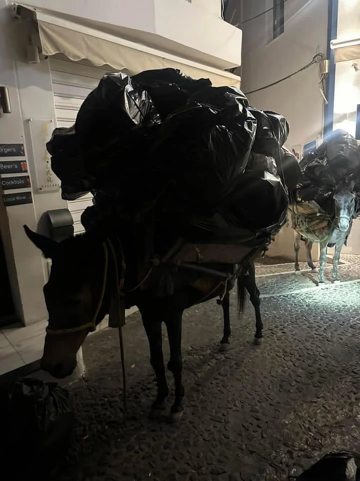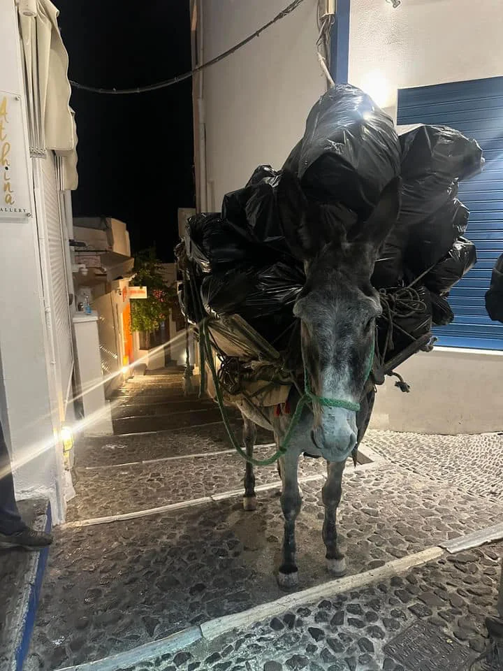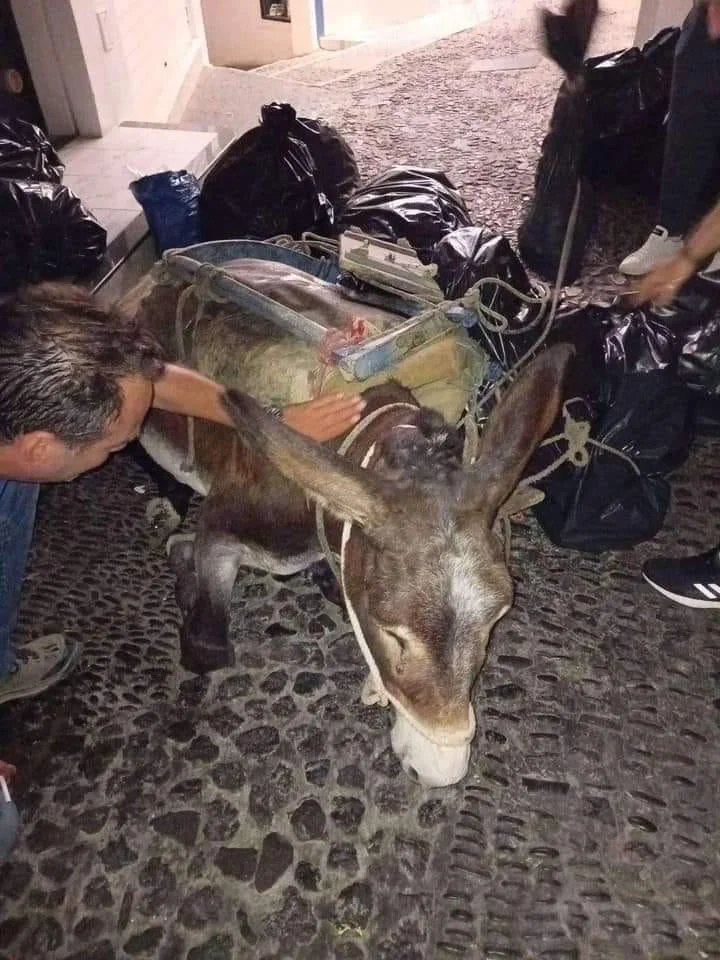 Σαντορίνη: Γαϊδουράκι καταρρέει από το βάρος του φορτίου που κουβαλάει – Δείτε φωτογραφίες