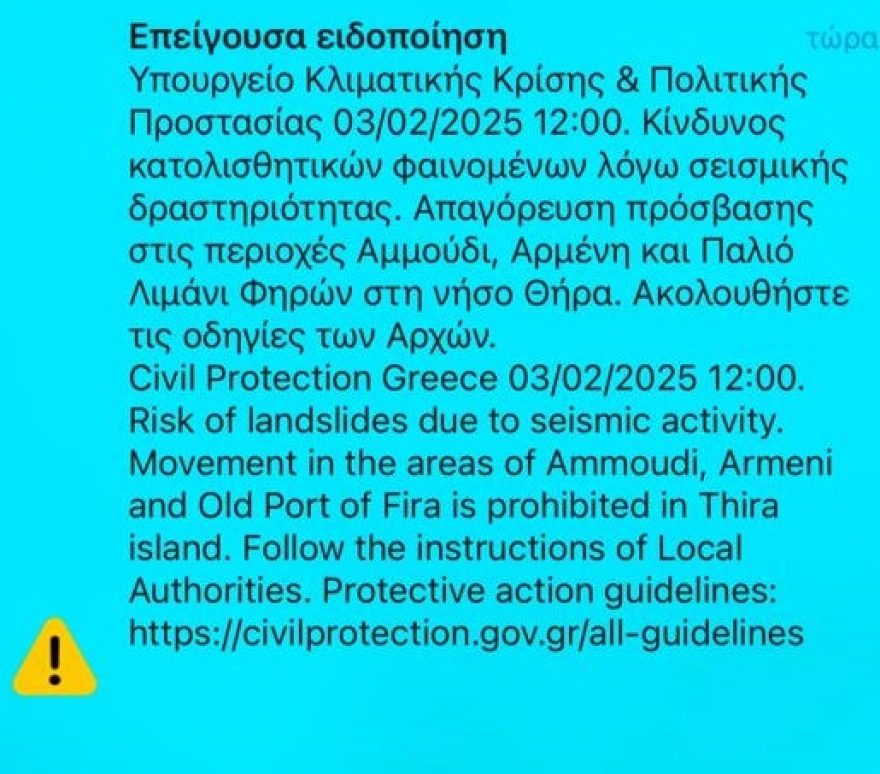 Δείτε το μήνυμα από το 112 που εστάλη στη Σαντορίνη