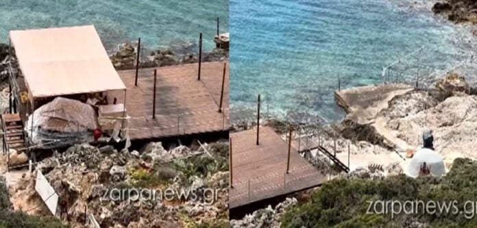 Τοπικό ρεπορτάζ αποκάλυψε την ύπαρξη μεταλλικής εξέδρας, ντουζιέρας, ομπρελών, ακόμη και εκσκαφών σε βραχώδες τοπίο, γεγονός που έχει πυροδοτήσει οργισμένες αντιδράσεις.