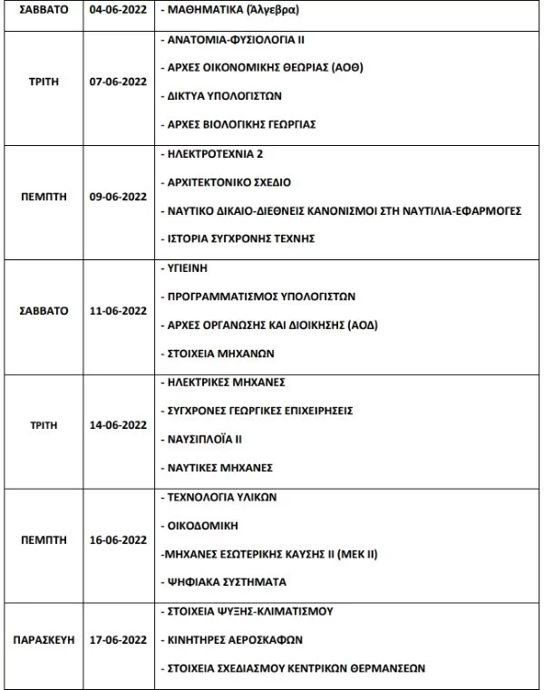 Η έκδοση των αποτελεσμάτων, μετά την ειδική εξεταστική περίοδο του Ιουνίου, θα γίνει μέχρι την Τρίτη 28 Ιουνίου 2022.