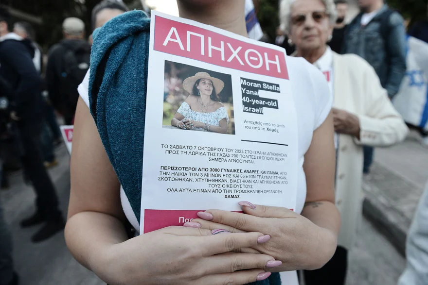Την εκδήλωση την διοργανώνει το Israel Greece Friendship Association, το οποίο ζητάει «δικαιοσύνη για τους χιλιάδες αθώους που δολοφονήθηκαν, αλλά και την άμεση απελευθέρωση των ομήρων που κρατά η Χαμάς». Πολλοί από τους συγκεντρωμένους κρατούν πλακάτ ανθρώπων που κρατούνται όμηροι από τους άνδρες της Χαμάς.