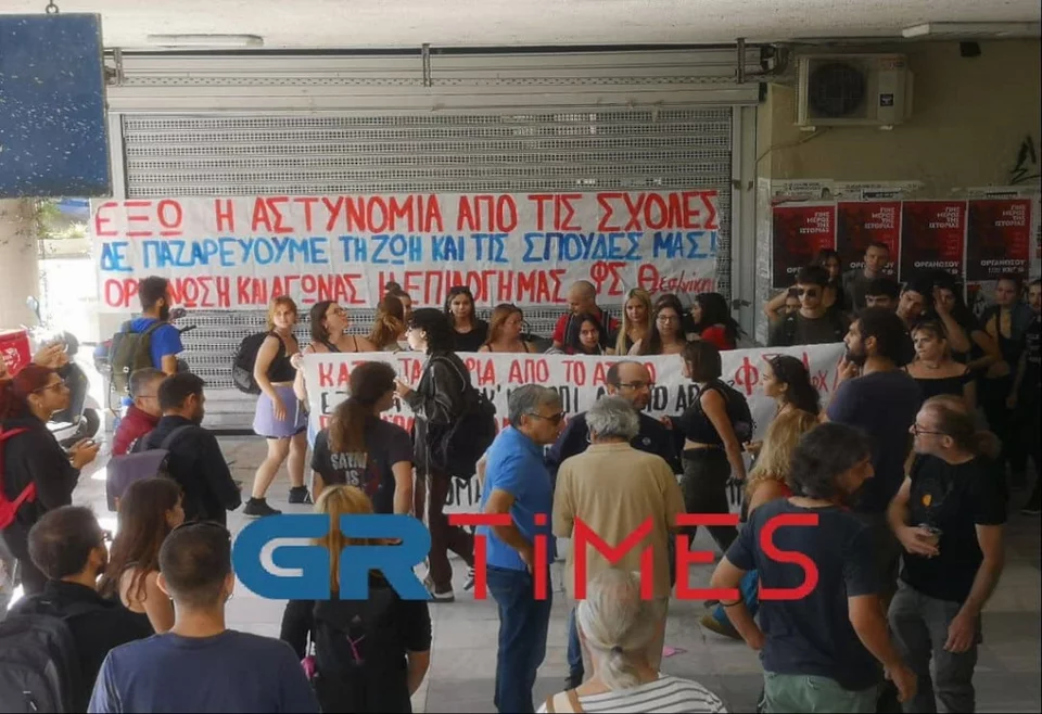 Συγκέντρωση φοιτητών έξω από την Πρυτανεία του ΑΠΘ κατά της αστυνομικής παρουσίας (βίντεο-φωτο)