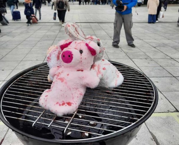 Τα άτομα αυτά μέσω της παρέμβασής τους ήθελαν να ευαισθητοποιήσουν τους πολίτες σχετικά με την «μαζική σφαγή ζώων γιατί η ζωή τους είναι το ίδιο πολύτιμη όσο και η δική μας»!