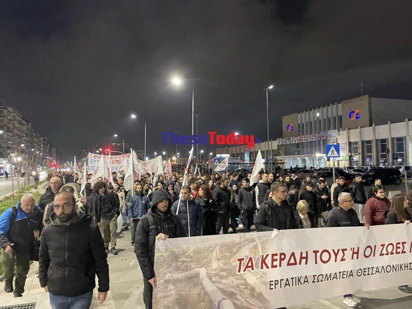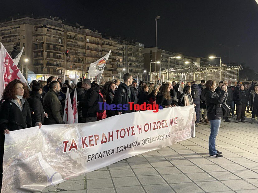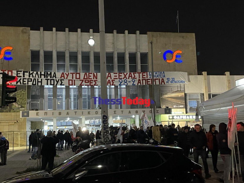 Συγκέντρωση διαμαρτυρίας πραγματοποιείται αυτήν την στιγμή έξω από το Σιδηροδρομικό Σταθμό της Θεσσαλονίκης για τον έναν χρόνο που συμπληρώθηκε από το έγκλημα στα Τέμπη.