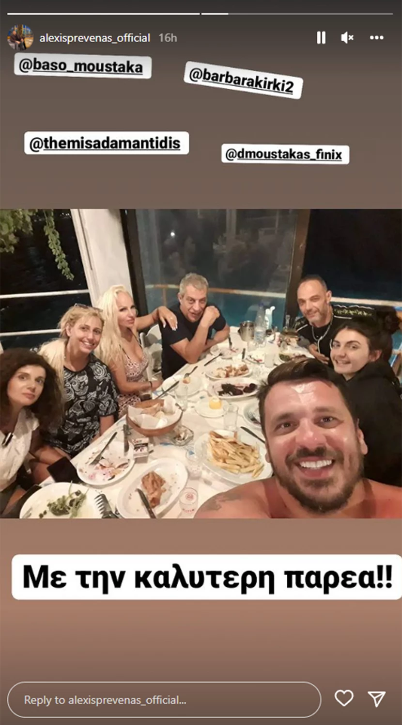 Το βράδυ της Τετάρτης 10/8 το ζευγάρι πήγε για φαγητό με φίλους του και ο τραγουδιστής Αλέξης Πρεβενάς ανήρτησε μία σχετική φωτογραφία στην οποία φαίνονται ο Θέμης Αδαμαντίδης και η Βαρβάρα Κίρκη να κάθονται δίπλα ο ένας στον άλλον.