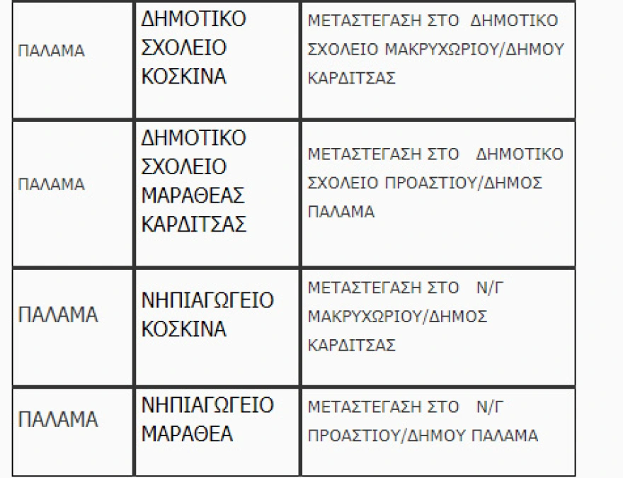 Η μεταφορά των μαθητών των παραπάνω σχολείων έχει προβλεφθεί και θα καλυφθεί από την Περιφέρεια Θεσσαλίας.