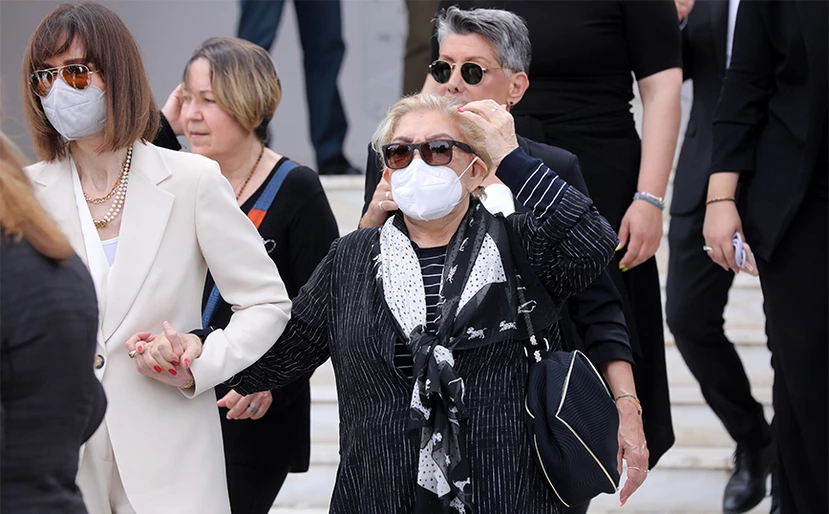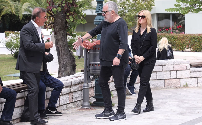 Στο νεκροταφείο Παπάγου, κατέφθασε πρώτη η Κατιάνα Μπαλανίκα, πρώην σύζυγος του επιχειρηματία, υποβασταζόμενη από τον γιο τους, Μάκη, με την γνωστή ηθοποιό να είναι συντετριμμένη.
