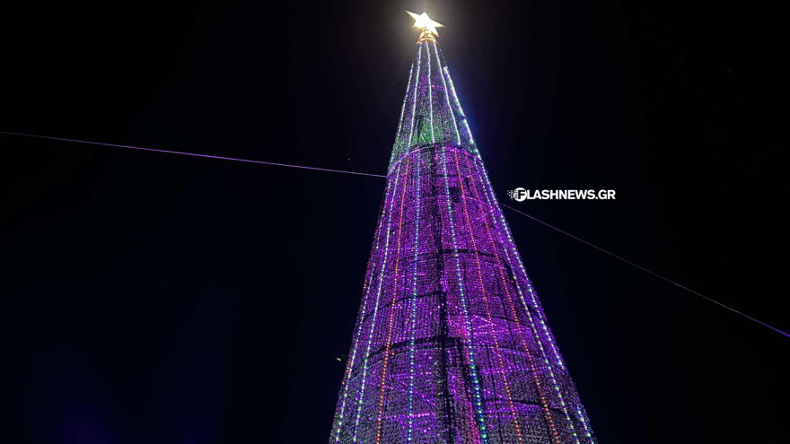 Ένα από τα μεγαλύτερα χριστουγεννιάτικα δέντρα στην Κρήτη φωταγωγήθηκε νωρίτερα σήμερα, στην περιοχή του Ομαλού στα Χανιά.