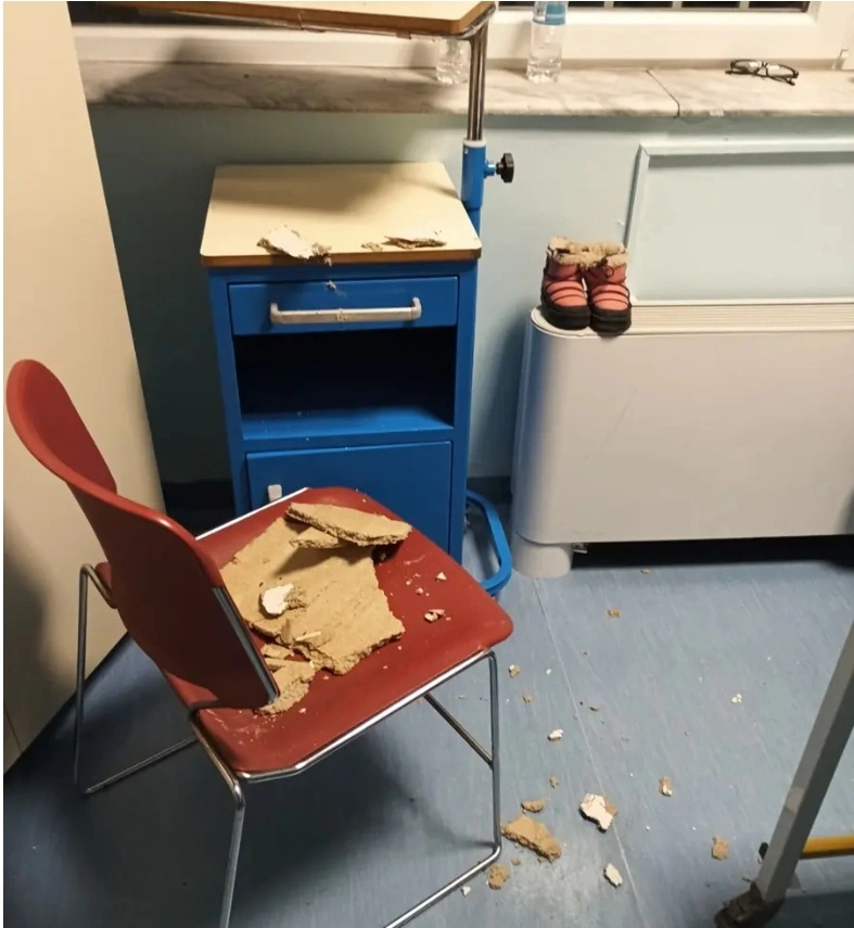 Ο θάλαμος νοσηλείας στον οποίο έπεσε ένα κομμάτι γυψοσανίδας από την οροφή και σημειώθηκε διαρροή νερού εκκενώθηκε και τα νοσηλευόμενα παιδιά μετακινήθηκαν σε άλλους θαλάμους, χωρίς να υπάρχει δυνατότητα για νοσηλεία άλλων περιστατικών στη μονάδα ειδικών λοιμώξεων!
