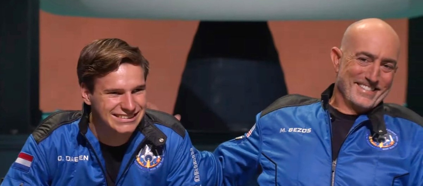 Ο Όλιβερ Ντέιμεν, φοιτητής Φυσικών Επιστημών, συνόδευσε τον Μπέζος, τον αδελφό του Μαρκ Μπέζος και την 82χρονη αεροπόρο Ουάλι Φανκ, τον γηραιότερο άνθρωπο που ταξίδεψε στο διάστημα, σε ένα ταξίδι 10 λεπτών, πέραν της ατμόσφαιρας της Γης.