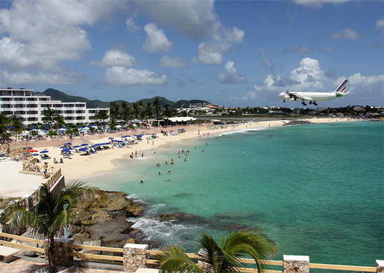 Ξαφνικά ένα αεροπλάνο περνάει λίγα μέτρα πάνω από το κεφάλι σας και χαλάει την ειδυλλιακή αυτή ατμόσφαιρα. Σίγουρα βρίσκεστε στην παραλία του Maho στο νησί St. Martin, στην Καραϊβική.