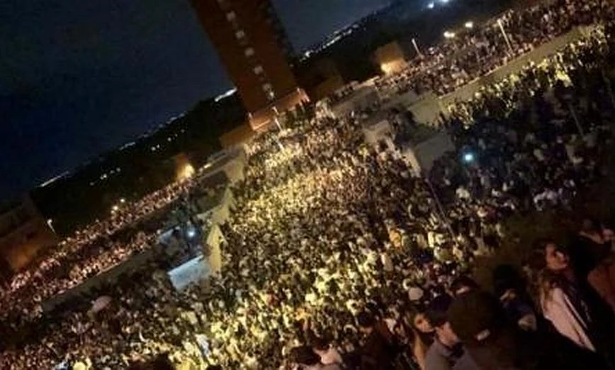 Σε φωτογραφίες και βίντεο που αναρτήθηκαν σε ιστοτόπους κοινωνικής δικτύωσης, οι χιλιάδες νέοι πίνουν και χορεύουν και σχεδόν κανείς δεν φοράει μάσκα.