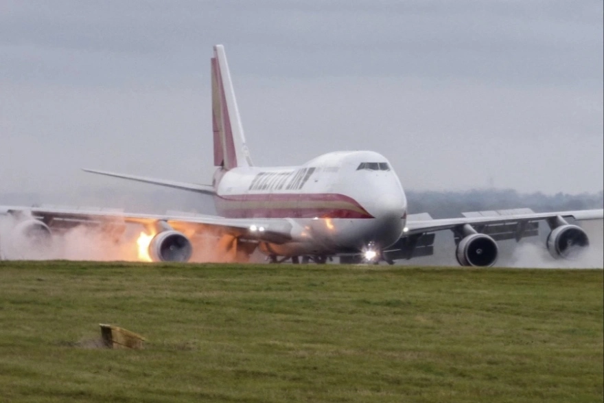 Σύμφωνα με δημοσίευμα της Daily Mail, που κάνει λόγο για «λάθη στην προσγείωση», κανείς δεν τραυματίστηκε όταν το φορτηγό αεροπλάνο 747 που είχε αναχωρήσει νωρίτερα από τη Λειψία της Γερμανίας προσγειώθηκε στον αγγλικό αερολιμένα με έναν εκκωφαντικό κρότο. Στη φωτογραφία είναι εμφανείς οι φλόγες που πετάγονται από έναν από τους κινητήρες του αεροσκάφους, καθώς και οι καπνοί που αρχίζουν να τυλίγουν το 747.