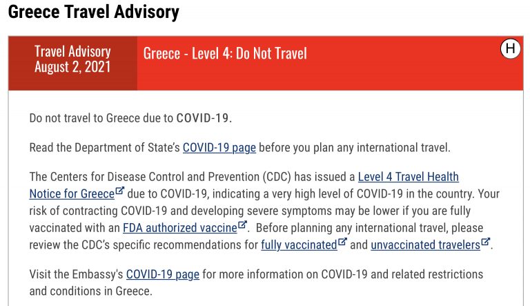Συνεχίζεται ο διεθνής διασυρμός της κυβέρνησης του Κυριάκου Μητσοτάκη, καθώς οι ανανεωμένες οδηγίες και ανακοινώσεις τόσο του CDC όσο και του State Department, ζητούν από τους Αμερικανούς να μην ταξιδεύουν στην Ελλάδα, λόγω Covid-19.