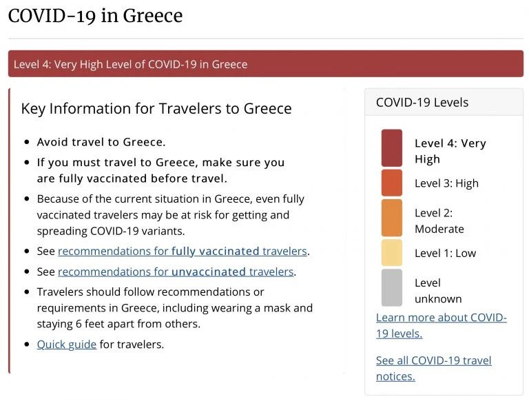 Η κατηγορία 4 είναι η υψηλότερης επικινδυνότητας κατηγορία, που συνιστά αποτροπή ταξιδιού στη χώρα. Ακόμα και για τους πλήρως εμβολιασμένους.