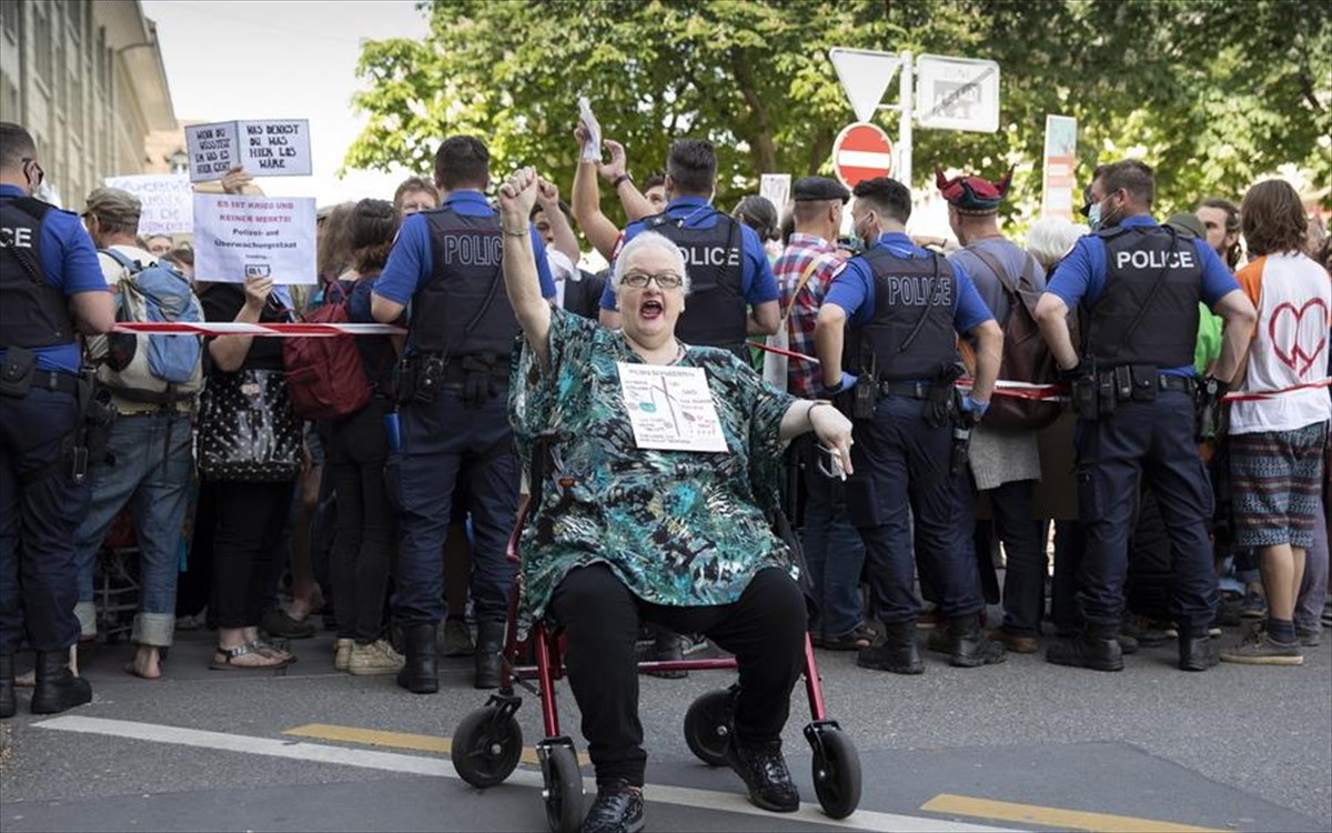 Διαδηλώσεις στην Βέρνη της Ελβετίας ενάντια στον κοινωνικό ρατσισμό των πιστοποιητικών εμβολιασμού.