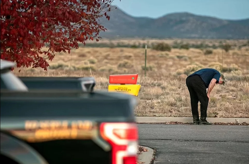 Σε φωτογραφίες που ήρθαν στο φως τη δημοσιότητας, ο Μπάλντουιν διακρίνεται να κλαίει με λυγμούς και να αγωνιά μετά το δυστύχημα σε ένα πάρκινγκ στη Σάντα Φε, στο Νέο Μεξικό, κοντά στη σκηνή των γυρισμάτων του Rust όπου συνέβη το δυστύχημα.
