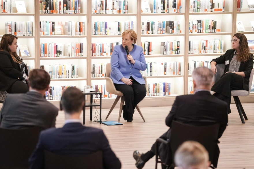 Η Γερμανίδα καγκελάριος Άνγκελα Μέρκελ, το πρωί της Παρασκευής, πραγματοποίησε συνάντηση με νέους στο Ινστιτούτο Goethe στο Κολωνάκι.