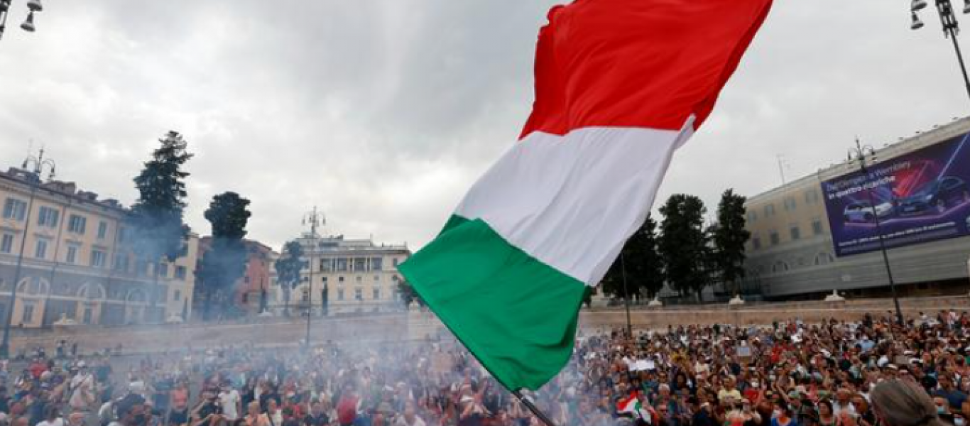 Στην Ρώμη, οι αμφισβητίες του «πράσινου πάσου» προχώρησαν μόνον σε καθιστική διαμαρτυρία (η οποία επιτρέπεται από τους νέους κανόνες) με σύνθημα: «είμαστε ο λαός της κάθε ιταλικής πλατείας».