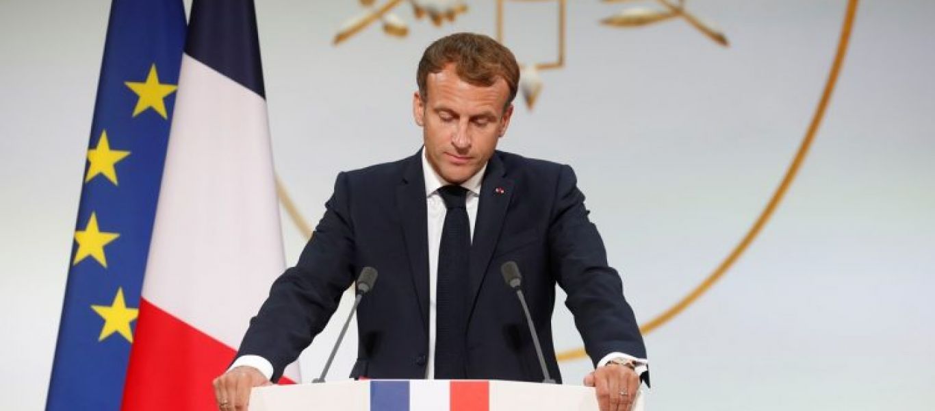 Το Μέγαρο των Ηλυσίων επιβεβαίωσε την αλλαγή, ανακοινώνοντας ότι το είχε αποφασίσει ο Πρόεδρος, Εμμανουέλ Μακρόν, από τον Ιούλιο του 2020. Την τροποποίηση του μπλε της τρίχρωμης σημαίας που κοσμεί το προεδρικό μέγαρο, για να επιστρέψει στο ναυτικό μπλε που υπήρχε στη σημαία πριν από το 1976, όπως και στα λάβαρα του Πρώτου Παγκοσμίου Πολέμου, αλλά και των Απελευθερωτών της Γαλλίας στον Β΄ Παγκόσμιο.