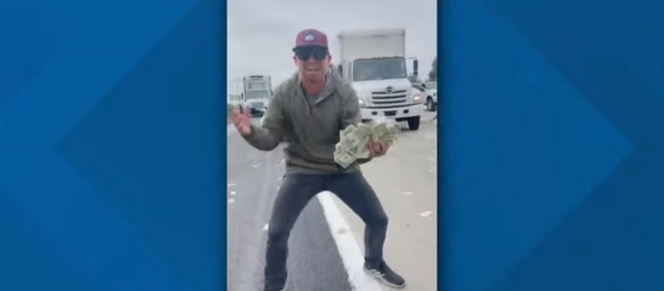 Και ξαφνικά άρχισε να «βρέχει» λεφτά σε έναν αυτοκινητόδρομο της Καλιφόρνια…