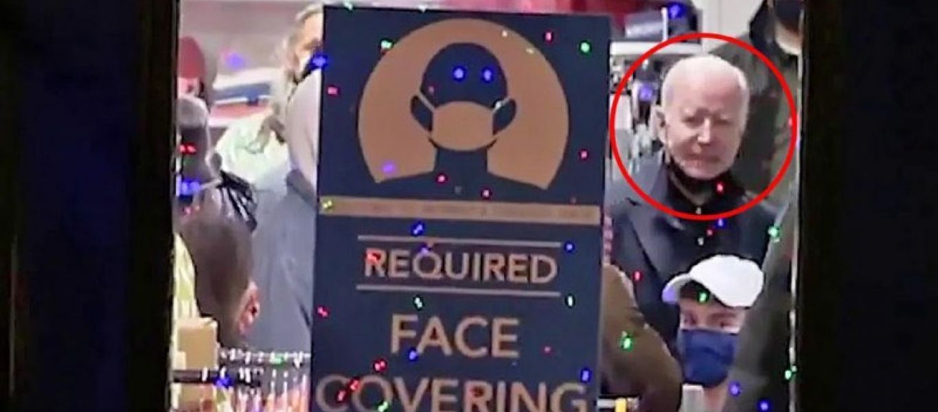 Συγκεκριμένα, το Σάββατο (27/11), ο Τζο Μπάιντεν εθεάθη να ψωνίζει μέσα σε ένα κατάστημα με τη μάσκα κατεβασμένη στο πιγούνι, παρ’ όλο που έχει επανειλημμένα συστήσει στους Αμερικανούς να τη φορούν με τον σωστό τρόπο.