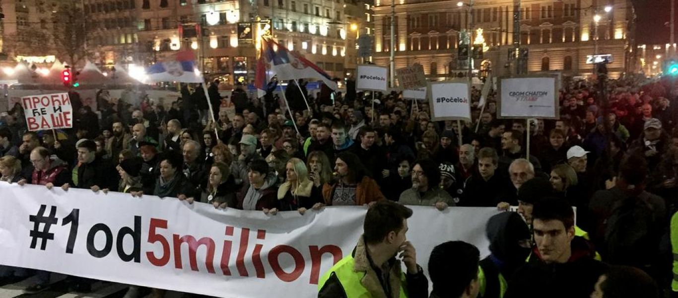 Οι αποκλεισμοί των οδικών αρτηριών, όπως ανακοινώθηκε από τους οργανωτές, θα διαρκέσουν δύο ώρες, μέχρι τις 16:00 τοπική ώρα (17:00 ώρα Ελλάδας) και θα επαναλαμβάνονται κάθε Σάββατο μέχρι να καταργηθούν οι συγκεκριμένοι νόμοι. Στο Βελιγράδι χιλιάδες πολίτες απέκλεισαν την κεντρική οδική αρτηρία που οδηγεί από την παλιά προς τη νέα πόλη, όπως επίσης και τον διεθνή αυτοκινητόδρομο Ε-75. Μικροεπεισόδια σημειώθηκαν στην πόλη Νόβι Σαντ όπου ομάδα νεαρών εισήλθε ανάμεσα στους διαδηλωτές φωνάζοντας τους ότι είναι «προδότες» και «μισθοφόροι των ξένων».