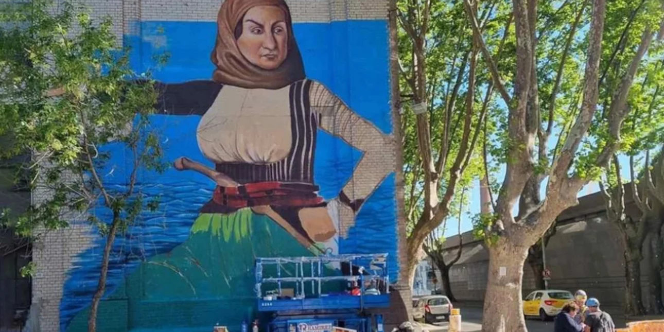 Ένα τεράστιο γκράφιτι που απεικονίζει τη Λασκαρίνα Μπουμπουλίνα βρίσκεται σε περίοπτη θέση στο λιμάνι του Μοντεβιδέο της Ουρουγουάης.
