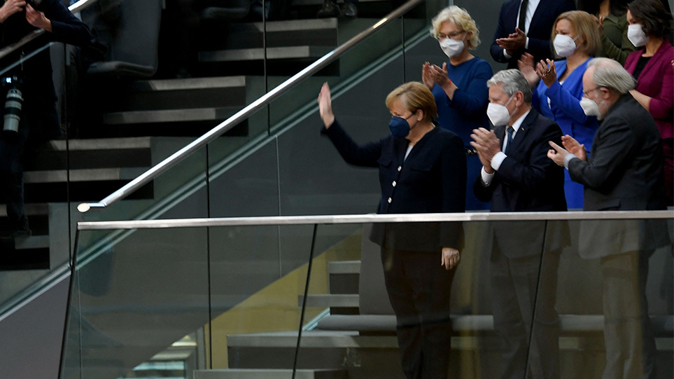 «Σας εύχομαι ό,τι καλύτερο για τη χώρα» είπε η Α. Μέρκελ και με το χαμόγελο στα χείλη, χαιρέτησε τους δημοσιογράφους μέσα από το αυτοκίνητο στο οποίο επέβαινε ολοκληρώνοντας τη θητεία της στο αξίωμα της Καγκελαρίου και μπαίνοντας στο «πολιτικό περιθώριο»