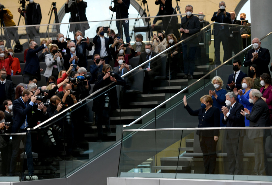 H Άνγκελα Μέρκελ, που επί 16 χρόνια διετέλεσε καγκελάριος της Γερμανίας, συνεχάρη τον διάδοχό της Σοσιαλδημοκράτη Όλαφ Σολτς σε μία ομιλία της στο κτίριο της καγκελαρίας. Η τελετή παράδοσης ήταν σύντομη με τη Μέρκελ να αποχωρεί από το κτίριο της Καγκελαρίας και τους εργαζόμενους να ξεσπούν σε παρατεταμένο χειροκρότημα ενώ ο Ο. Σολτς έσπευσε με τη σειρά του να της προσφέρει μία πλούσια ανθοδέσμη ως αποχαιρετιστήριο δώρο.