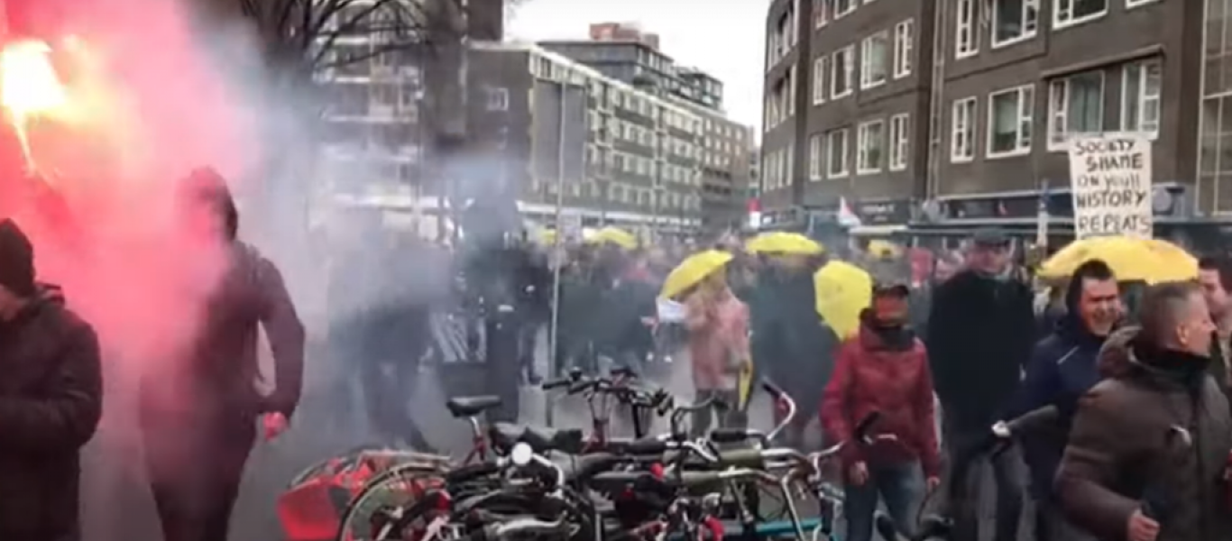 Συγκέντρωση διαμαρτυρίας κατά της υποχρεωτικότητας των εμβολιασμών, των μέτρων προστασίας κατά της Covid-19, αλλά και του πιστοποιητικού εμβολιασμού πραγματοποίησαν οι πολίτες του Ρότερνταμ, στην Ολλανδία.
