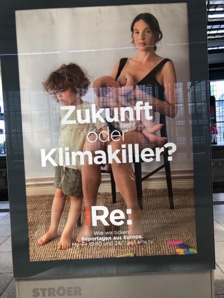 Προσέξτε ότι η όλη συζήτηση επικεντρώνεται στο αν είναι θεμιτό να «πειστούν» οι άνθρωποι να σταματήσουν να τεκνοποιούν. Θυμηθείτε ότι αρχικώς και η συζήτηση γύρω απο τα εμβόλια αφορούσε στο να πως να πειστούν οι άνθρωποι και είδαμε πως εξελίχθηκε. Δείτε και την σχετική αφίσα που οικολογικές οργανώσεις κυκλοφόρησαν στην Γερμανία στον κεντρικό μάλιστα σταθμό του Βερολίνου(η λεζάντα στα ελληνικά ειναι Μέλλον η δολοφόνος του κλίματος). Και επίσης προσέξτε ότι όλως τυχαίως στις σχετικές αφίσες πρωταγωνιστούν άτομα της λευκής φυλής και όχι έγχρωμοι…